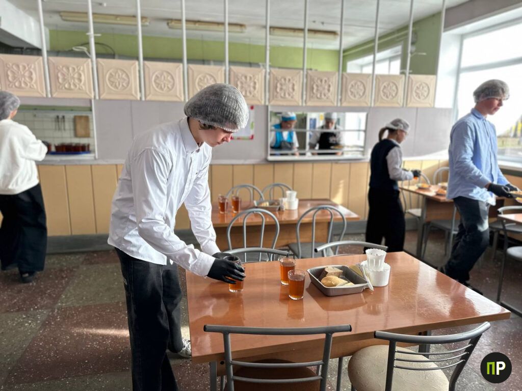В день нашего приезда на кухне трудились 4 повара и 2 кухонные рабочие. Каждые отвечали за свой участок: один — за мясо, другой — за раздачу. Попытка поменять их местами однажды не увенчалась успехом — команда нашла свой идеальный ритм. Недавно в коллективе появилась практикантка из колледжа — выпускница школы.