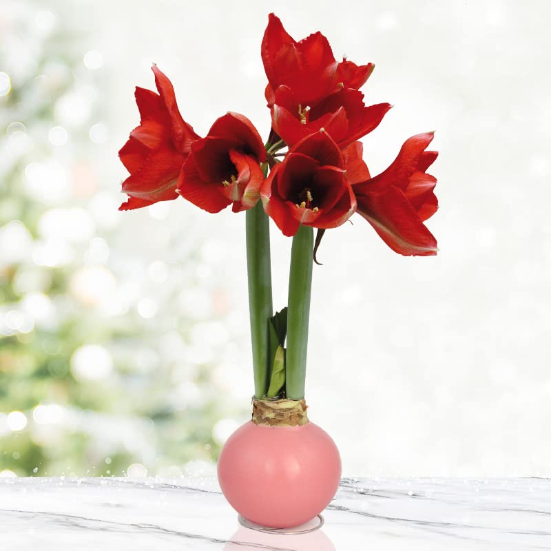 Это живая луковица, покрытая декоративным слоем воска. Воск удерживает влагу и содержит запас питательных веществ. Никакого грунта, горшка и регулярного полива не нужно — просто поставьте её на свет. Через 3–6 недель она выпустит мощный стебель с крупными цветами (красными, белыми, розовыми или в полоску).