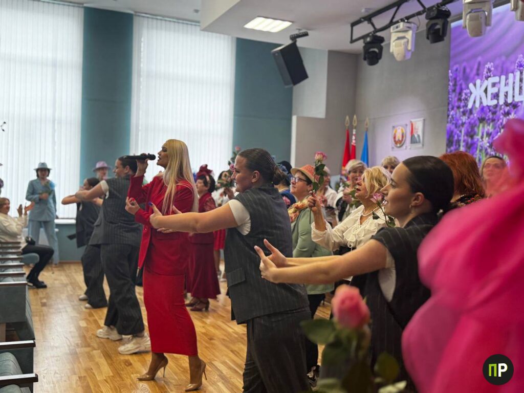 Мероприятие началось с премьеры авторской песни певицы Алеаны «Женщина — Богиня мира». А после публику ожидало самое интересное. На сцену выходили одна за другой подопечные Территориального центра социального обслуживания населения Минского района — женщины дефилировали в элегантных весенних образах.