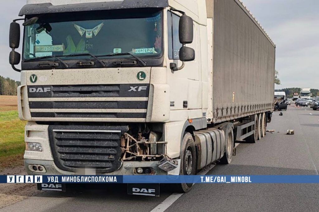 34-летний водитель на DAF в составе с полуприцепом ехал в направлении Минска в крайней левой полосе движения. При перестроении в крайнюю правую полосу он столкнулся с автомобилем Toyota – за рулем находилась 46-летняя женщина-водитель.