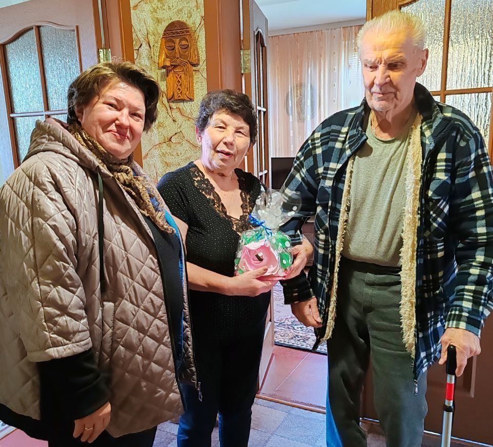 Среди тех, кого навестила Ольга, были супруги Павел и Нелла Сушко. Их брак — это пример настоящей семейной верности. В этом году Павел отметил 80-летний юбилей, а его супруге скоро исполнится 75. Вместе они ведут домашнее хозяйство.