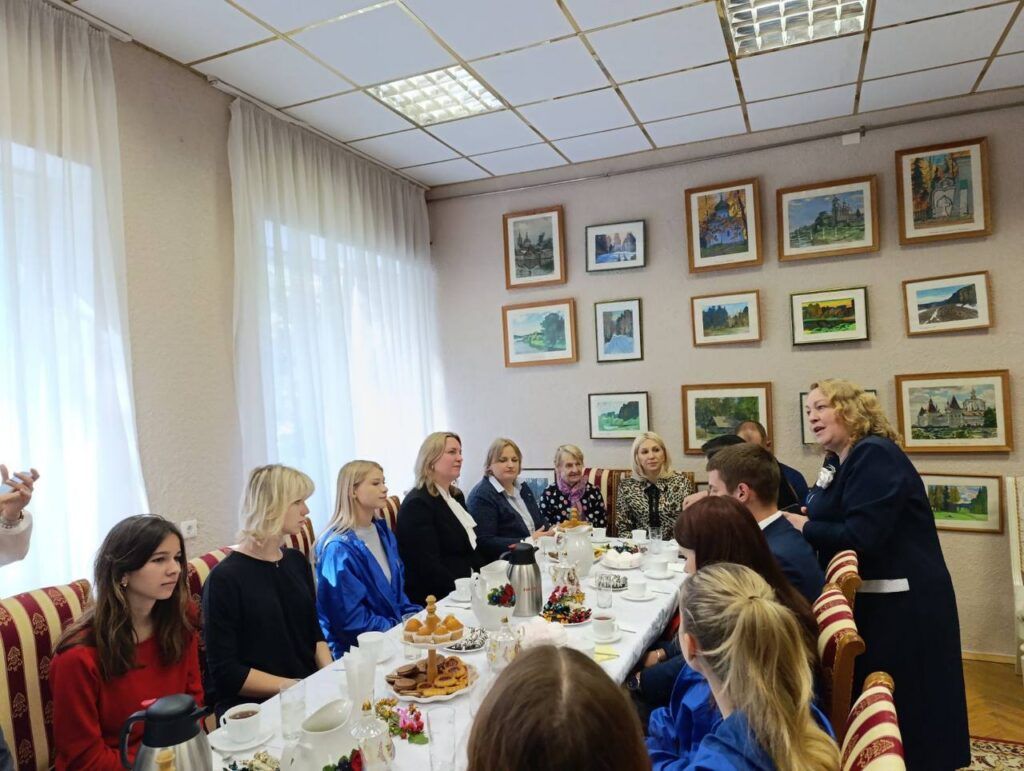 Для жителей пансионата был подготовлен большой праздничный торт. Все собрались за круглым столом, где представители молодого и старшего поколений общались и узнавали истины жизни.