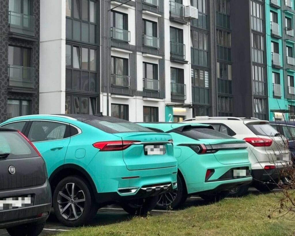 Пользователи Threads заметили забавную тенденцию: во дворах ЖК «Новая Боровая» всё чаще паркуются автомобили, цвет которых практически идентичен оттенку фасадов домов. На опубликованных фотографиях мы насчитали как минимум пять авто яркого бирюзового цвета.
