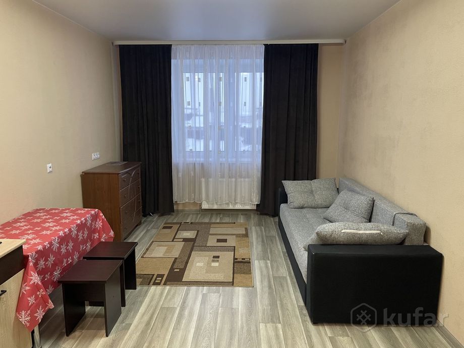 Тут есть два интересных предложения. В агрогородке Лесной на 10 этаже ждёт жильцов небольшая квартира на 30 м² с косметическим ремонтом. В ней есть всё необходимое: холодильник, плита, ванная и двухспальная кровать. Сдаётся на длительный срок. Цена — 803 BYN (280$) в месяц.