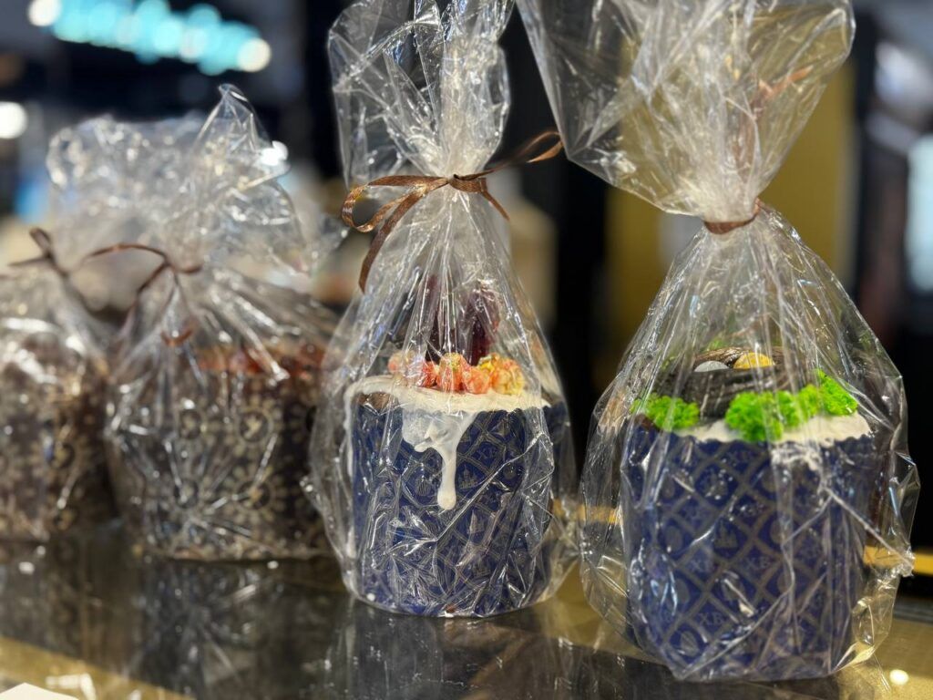 Следующая находка выглядит визуально как кулич, но уже подороже… Он подписан необычным названием — понеттоне. Оказалось, это традиционный итальянский рождественский кекс родом из Милана, который должен обладать высокой куполообразной формой и нежной пористой текстурой. Внутри, по словам продавцов, изюм, цукаты, шоколад.