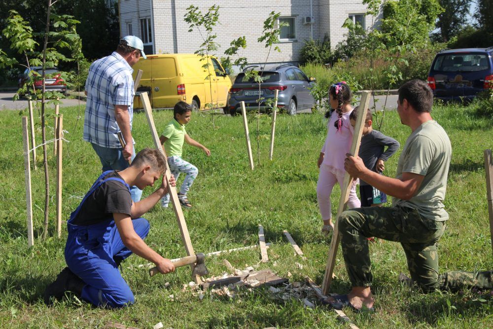 Дальше предстояло закрепить колышки у деревьев. Конечно, одной ей такую задачу было бы не осилить. Снова обратилась к людям, и многие поддержали ее, хотя нашлись и те, кто не согласился пожертвовать своим выходным днем ради «какого-то там парка».