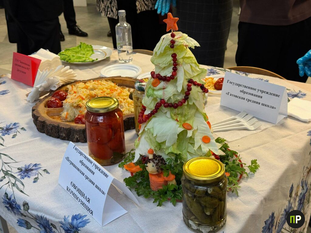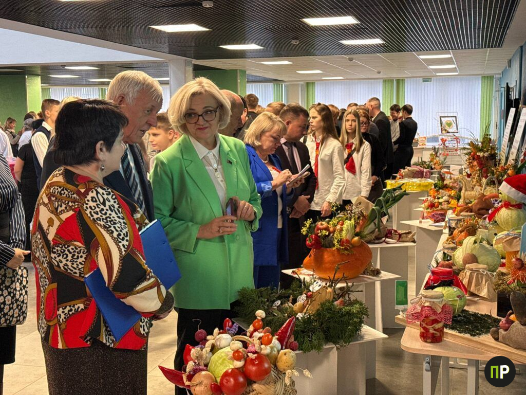 В фойе школы развернулась масштабная и яркая выставка овощей и блюд из них: учреждения образования Минского района подготовили авторские композиции, мастер-классы по приготовлению простых и красивых блюд, творческие зоны с сувенирами и играми.