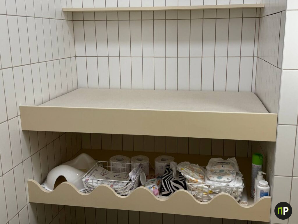 В туалетной комнате чисто и есть все необходимое, включая пеленальный стол
