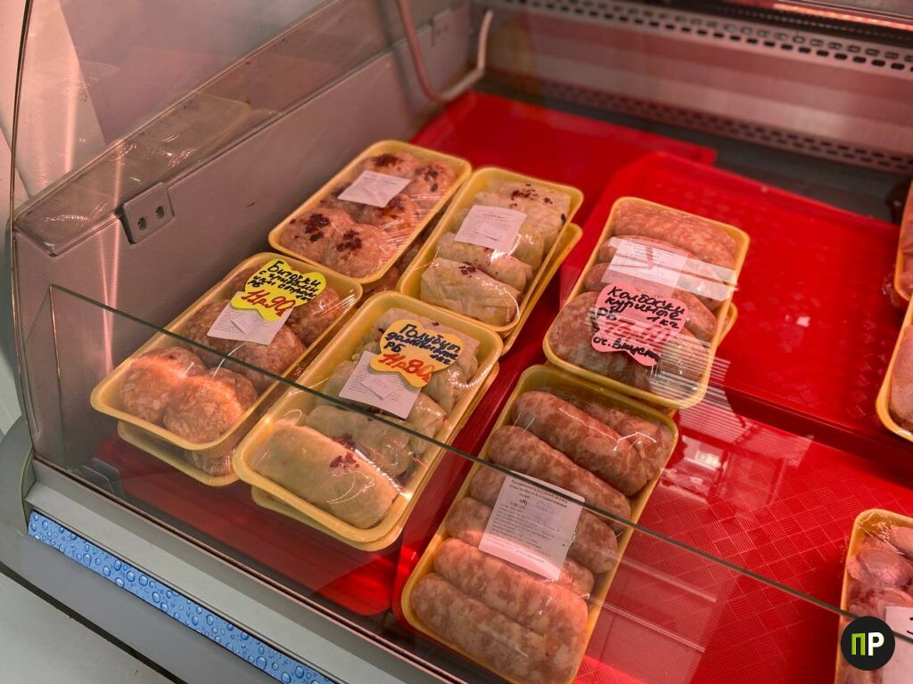 Мясной ряд поражает разнообразием. Свинина (лопатка, шея, окорок) в среднем стоит 14-14,50 руб./кг. Отдельного внимания заслуживает домашняя колбаса за 16,80 руб. Любителям курицы тоже есть из чего выбрать: крылья и голень – около 8 руб./кг, бедро – около 10 руб./кг.