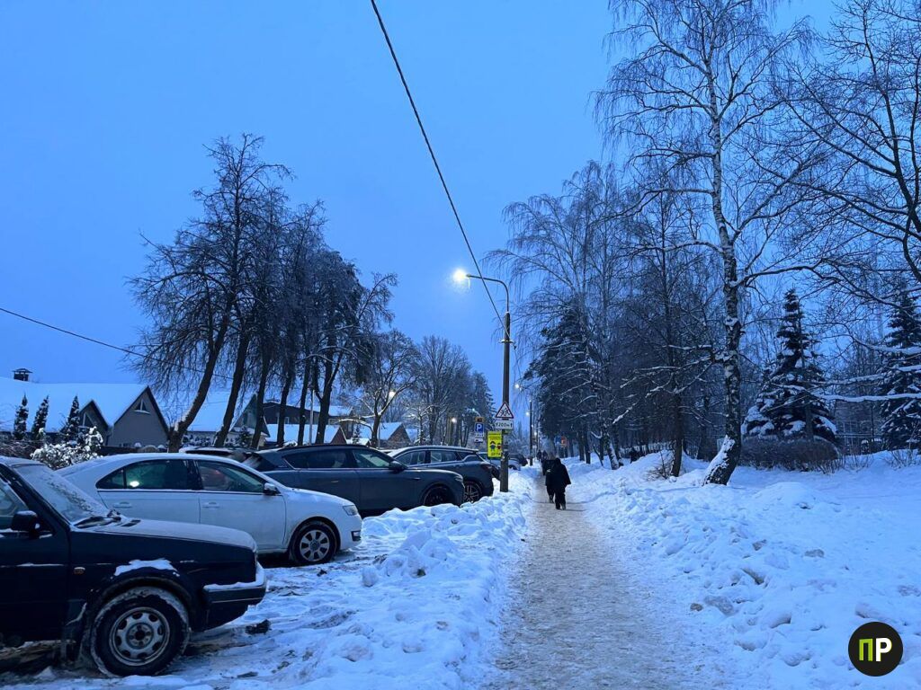 В какой-то момент начался несильный снегопад и усилился ветер, поэтому на расстоянии 200 метров видимость ухудшилась. Но это никак не сказалось, поскольку тут же начались зажигаться огни: во дворах, вдоль дороги.