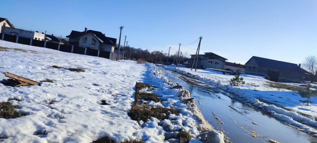 4 марта, день. В новой застройке дорога больше напоминает русло реки. Жители пытаются своими силами отводить воду, но поток с поля был сильным. Вечер того же дня. Ситуация резко ухудшается — воды становится в разы больше. Люди бьют тревогу.