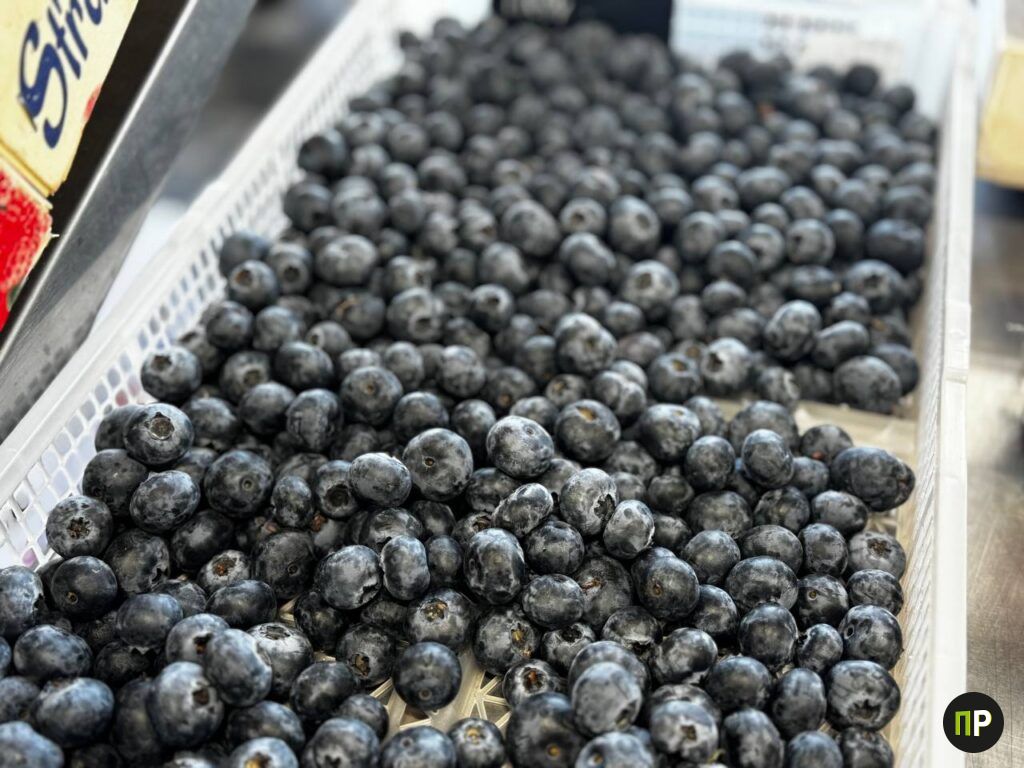 Среди ярких овощей нашли ящики с крупной голубикой по 130 рублей за кило и клубникой по 25.