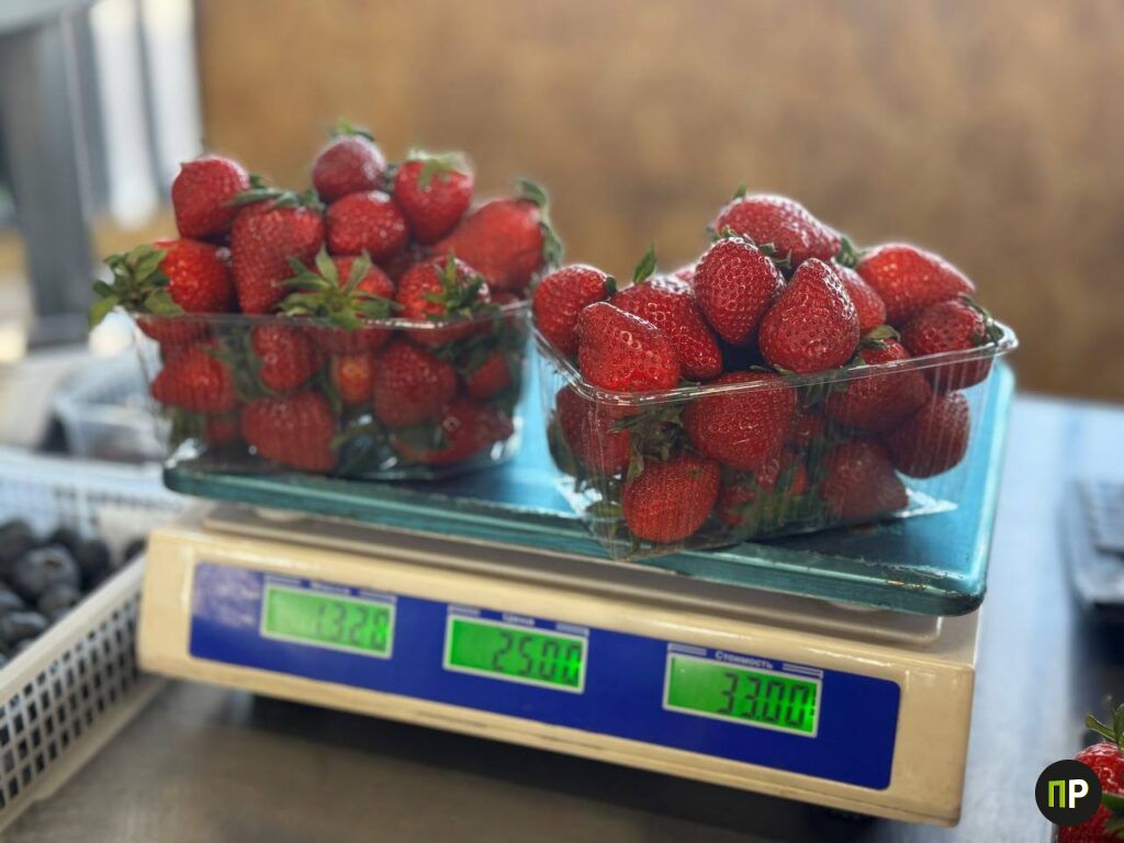 Между рядами мы встретили покупательницу с двумя лотками ярких и крупных ягод. По весу у нее вышло чуть больше килограмма клубники — заплатила Полина 33 рубля.