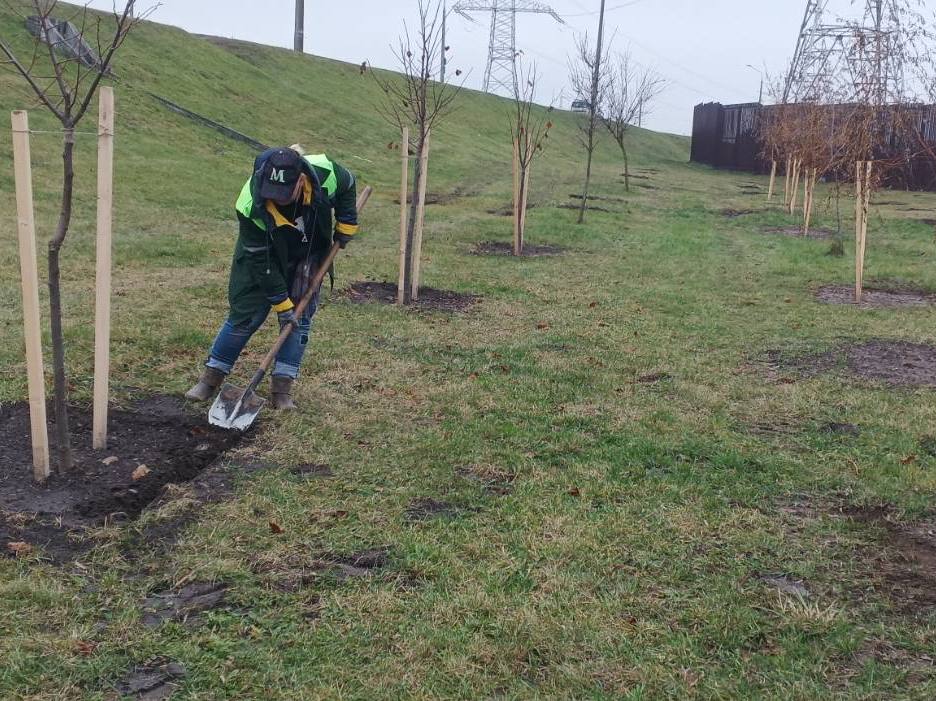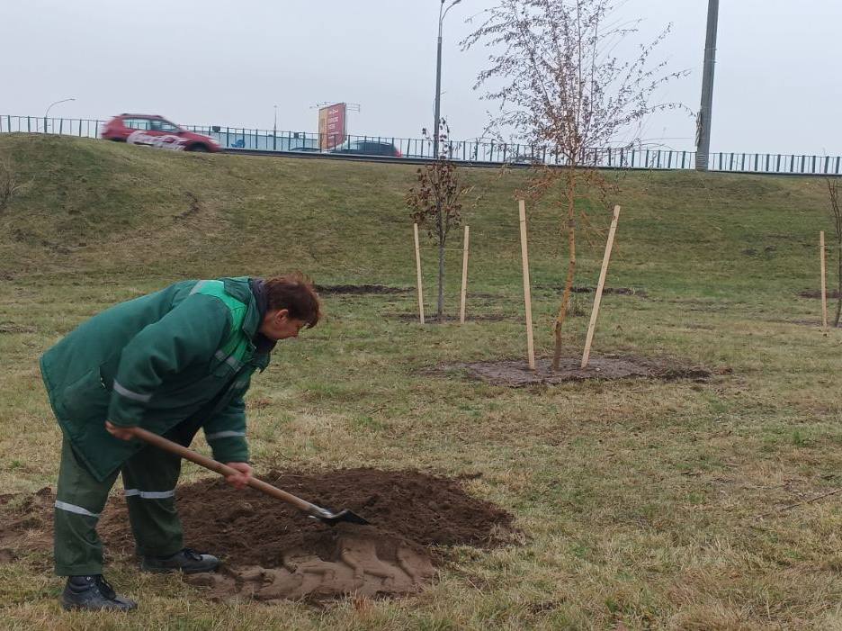 Специалисты УП «Зеленстрой Центрального района г. Минска» продолжают высаживать молодые саженцы вдоль МКАД для формирования новых зелёных зон на пригородной территории.