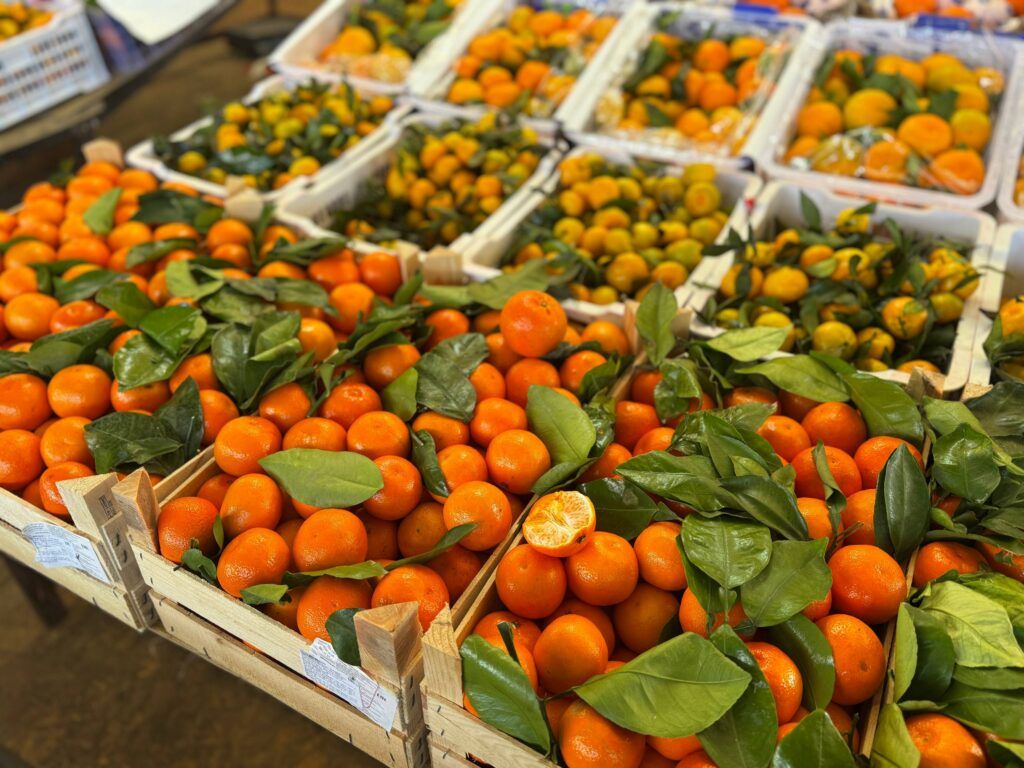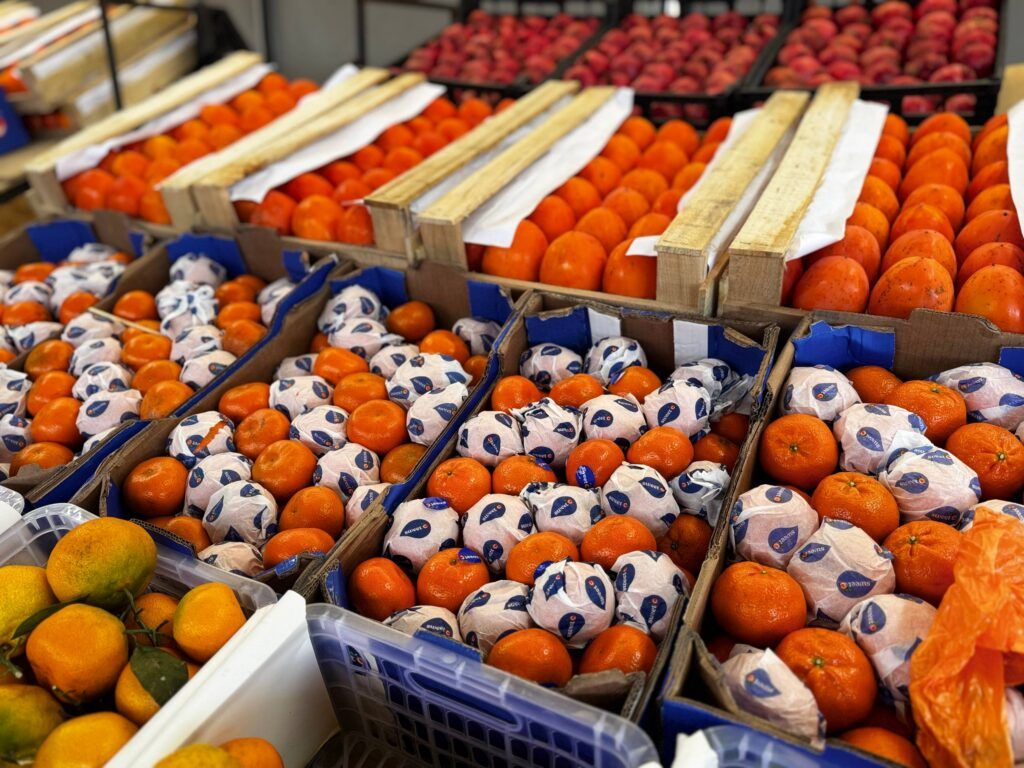 На фруктовых рядах — настоящее оживление. Мандарины и хурму раскупают ящиками, а если поторговаться, продавцы существенно снижают цену за килограмм.