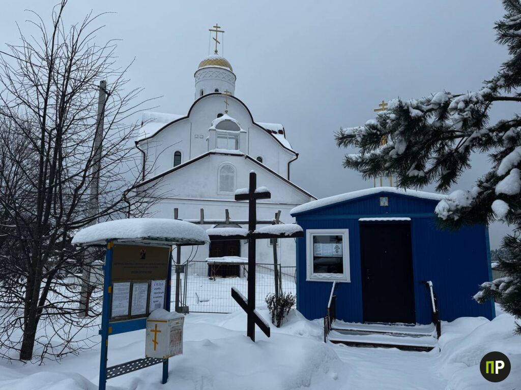 Рядом с новым зданием напоминает о начале пути скромная временная часовня, куда верующие приходили все эти годы. Перед храмом установлены поклонный крест, стенд с расписанием и ящик для пожертвований. В будущем часовню планируют переоборудовать под церковную лавку.