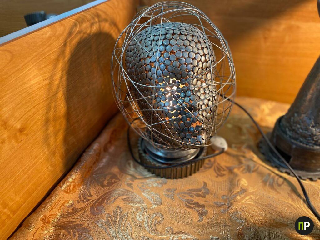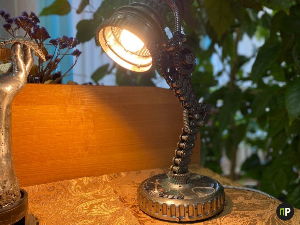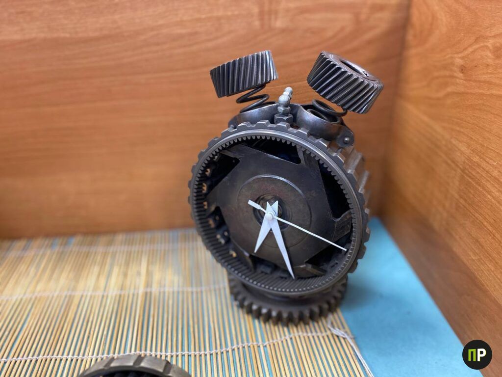 Раньше Владимир дарил изделия друзьям на дни рождения, но теперь у них появилось еще больше зрителей: можно посмотреть на постоянной выставке в Гатовской библиотеке. Например, часы (рабочие!) весом около 3 кг., светильник из автозапчастей, череп из цепи, гаек и болтов. Да, это мрачноватая, но очень детализированная скульптура, собранная из мелочей, которые найдутся в любой мастерской: пружин, сломанных сверл и прочего металлолома.