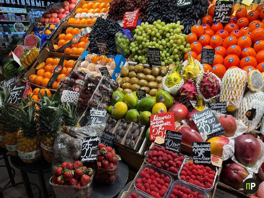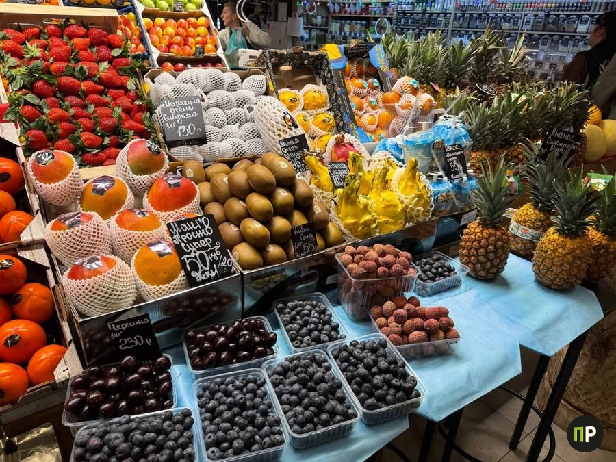 Бросается в глаза тренд на мини‑форматы. Мини‑арбуз стоит 25 рублей за килограмм, мини‑папайя — 65 рублей, мини‑ананас — 35 рублей за штуку. Также предлагают бэби‑бананы по 45 рублей за килограмм.