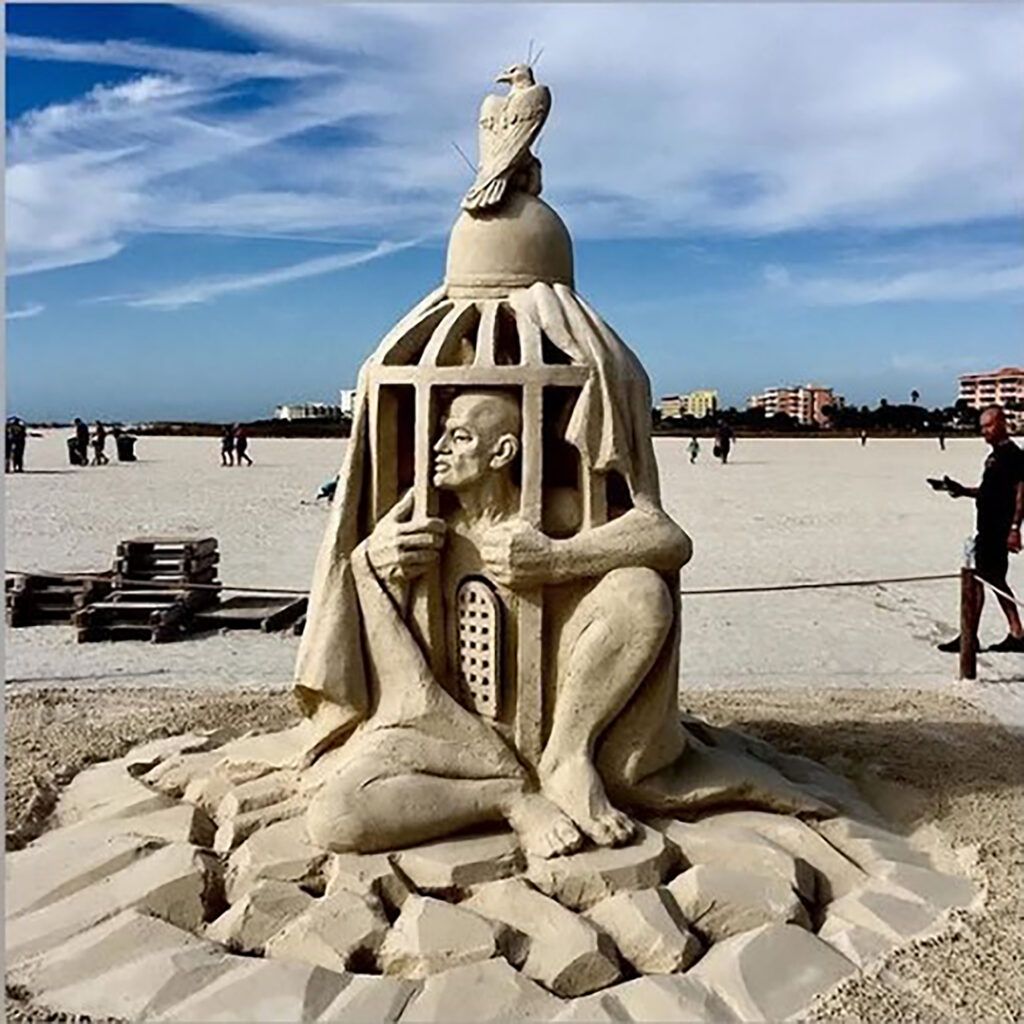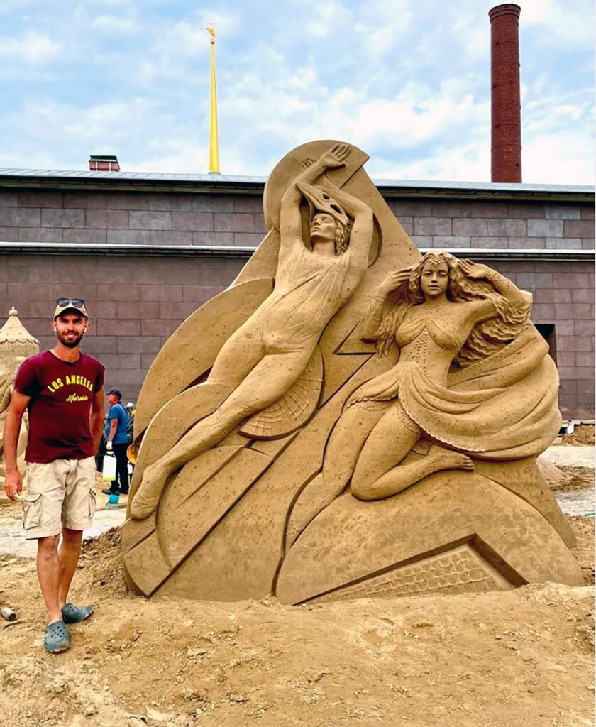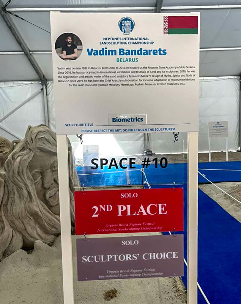 — В прошлом году на международном фестивале в Вирджинии-Бич я взял призовое место в номинации «Соло» с работой «Равновесие» и 4-е — со скульптурой из песка, у которой 12 пальцев и 46 глаз. Работа неординарна, говорят, что выглядит «жутко красиво». Это просто намёк на всепроникающий в нашу жизнь искусственный интеллект. А ещё, там же — Приз скульпторов. Это зачастую более престижная награда, так как коллеги лучше знают и разбираются в самом процессе и красоте. Меня приглашают как опытного мастера, — рассказывает художник.