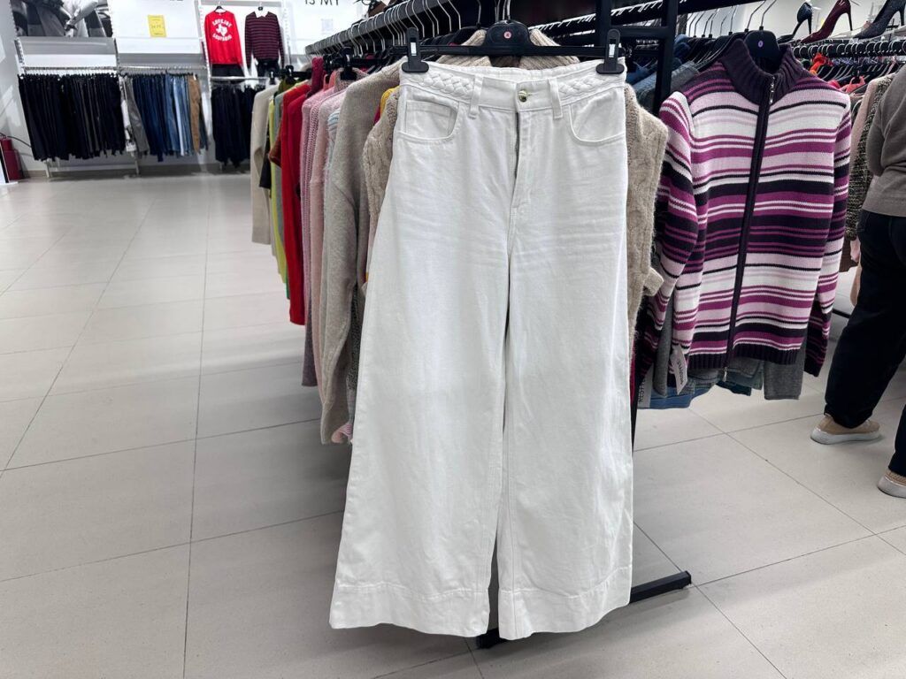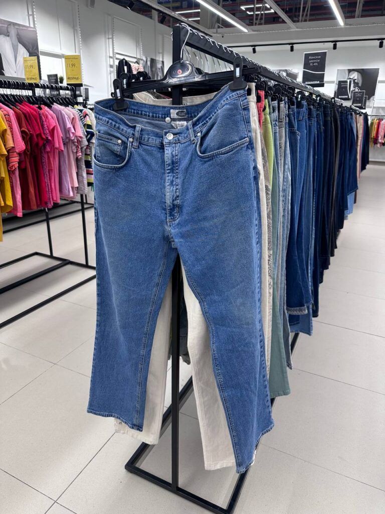 Джинсы и брюки: здесь большой разброс цен — от ультрабюджетных моделей за 14,99 BYN и трендовых клетчатых штанов за 24,99 BYN до базовых моделей за 47,99 BYN.