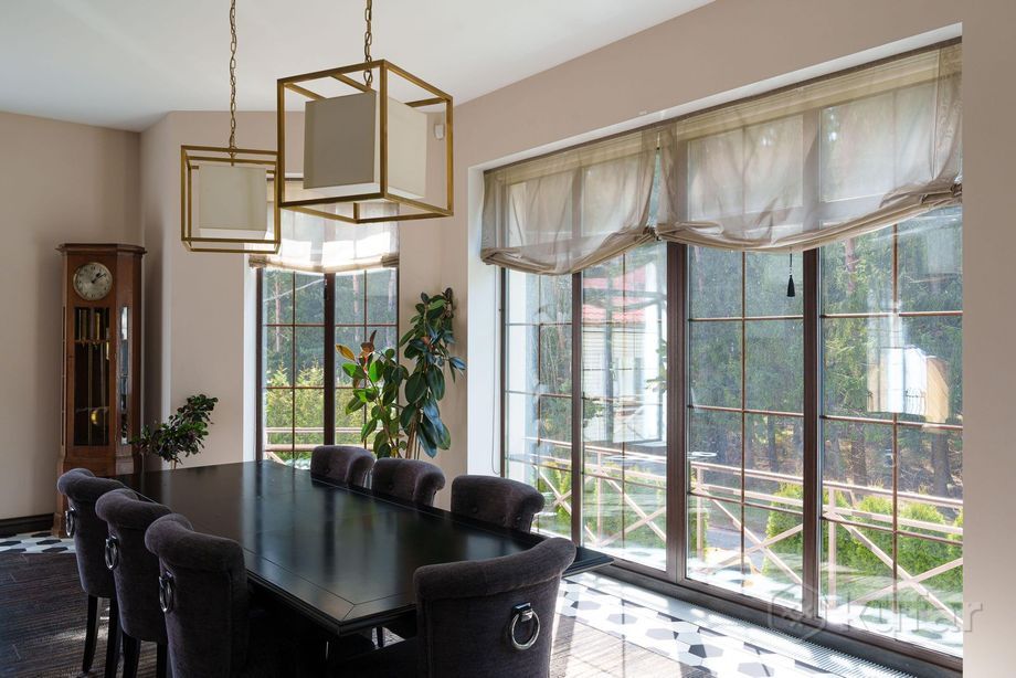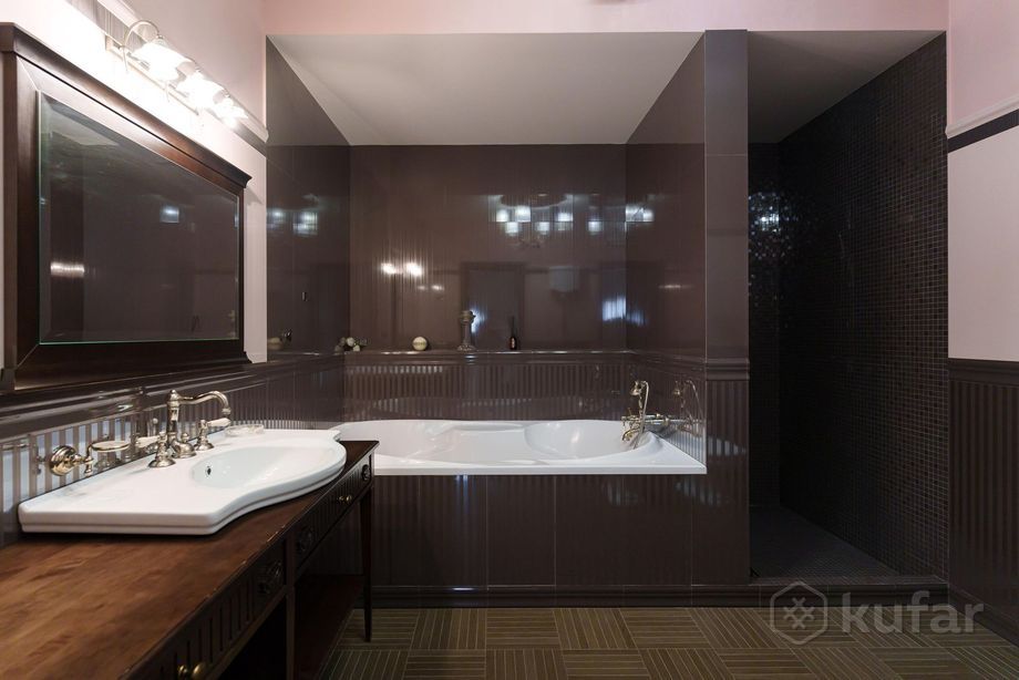 Роскошь в деталях: интерьер здесь — это коллекция предметов искусства. В гостиной царит антикварная мебель, итальянские светильники и камин. Кухня, собранная из итальянских материалов, оснащена премиальной техникой. В санузлах установлена итальянская и немецкая сантехника, а по дубовой лестнице можно подняться на второй этаж, где расположены все спальни и гардеробная.