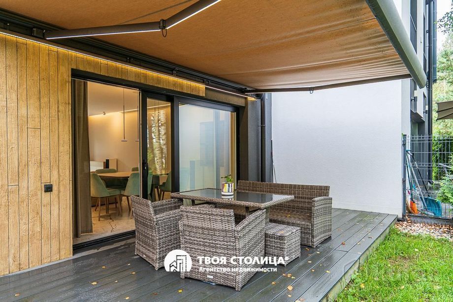 Формат жилья: квартира находится в доме на четыре семьи, что гарантирует приватность. У каждого владельца — отдельный вход, подсобное помещение, а на территории — шатер и место для барбекю.