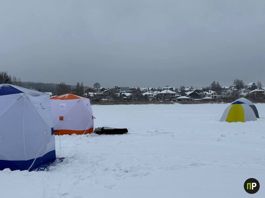 На реке и пруду они рассредоточились небольшими группами, а вот на водохранилище – настоящий «зимний город»: плотные цепочки машин вдоль берега, свободное место для парковки найти непросто, на льду – десятки палаток и одиночек на лунках.