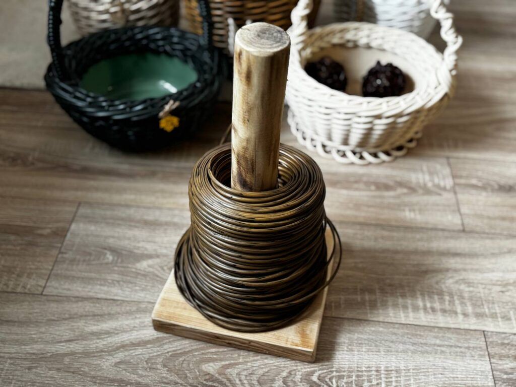 Чтобы корзинка или кашпо получились ровными, Людмила вооружается транспортиром, штангенциркулем и даже высчитывает число Пи. Ещё она подружилась с дрелью, вспомнила о существовании ключей и теперь может с точностью до миллиметра рассчитывать материал. Всё это — чтобы сэкономить полиротанг и получить идеальное изделие.