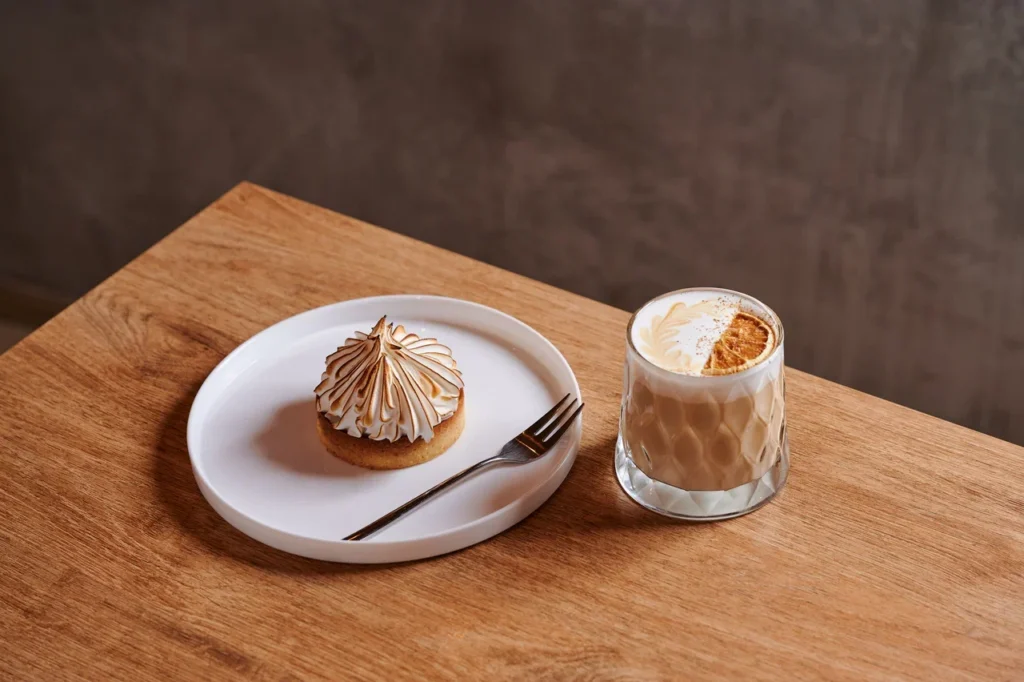 Согревающий «Апельсиновый» латте с легкой щепоткой корицы в дуэте с лимонной тарталеткой на миндальном тесте и нежной меренгой. Идеальный баланс цитрусовой свежести, сладости и кислинки, чтобы создать атмосферу зимнего уюта.