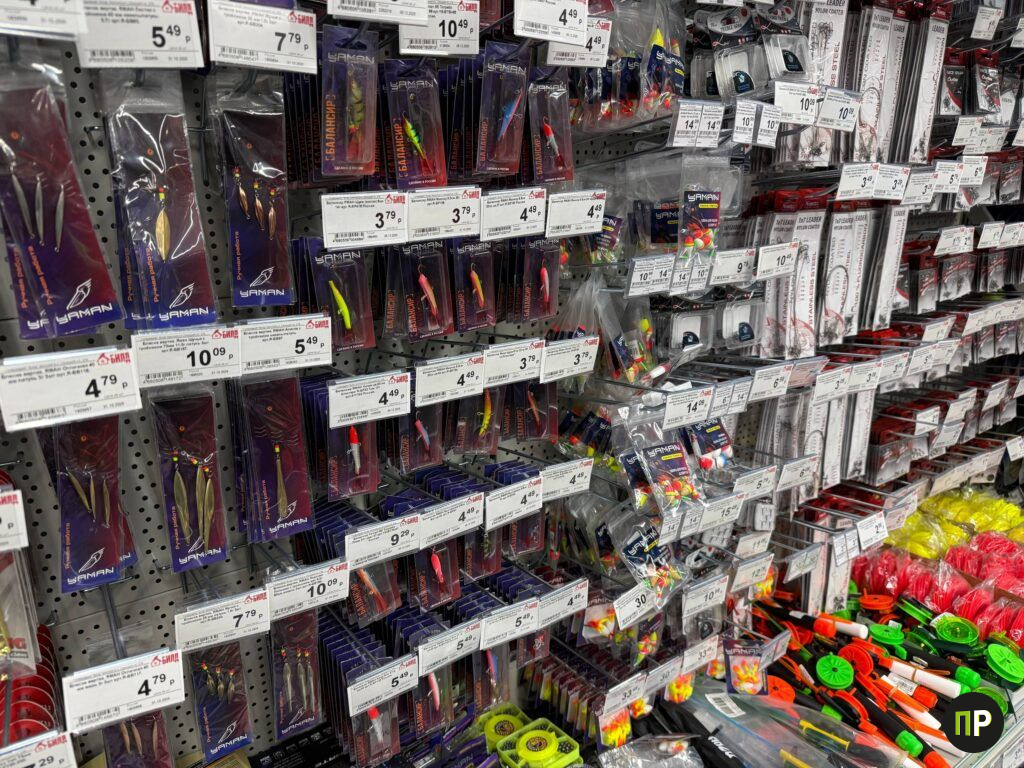 Здесь царит атмосфера активного досуга. Гитары (от 214 рублей) и укулеле (от 109 рублей) соседствуют с санками, тюбингами, самокатами (от 100 рублей) и велосипедами (от 284 рублей). В банном отделе — печи и тематические аксессуары, а в углу для рыбалки — зимние удочки от 12 рублей и снасти.