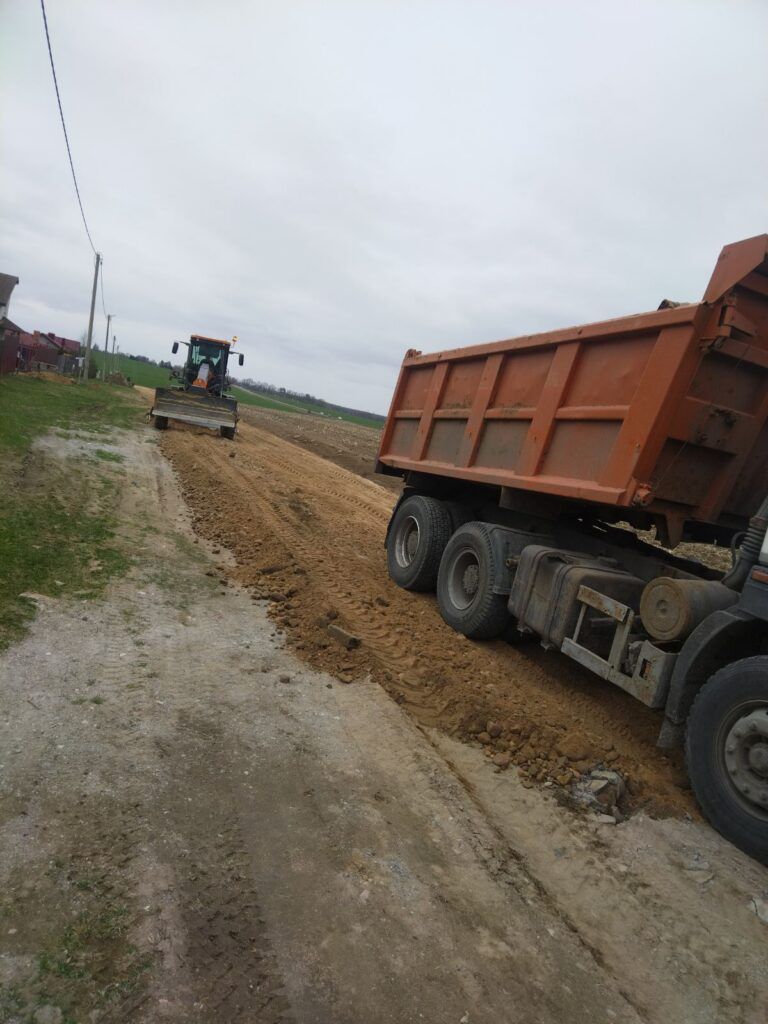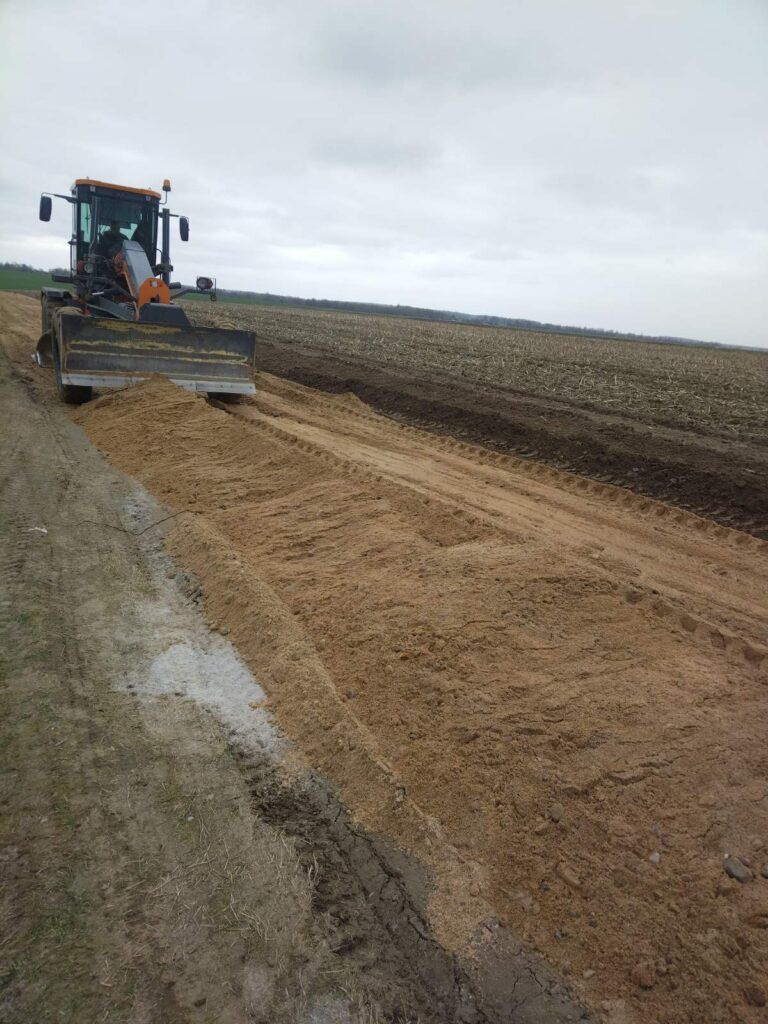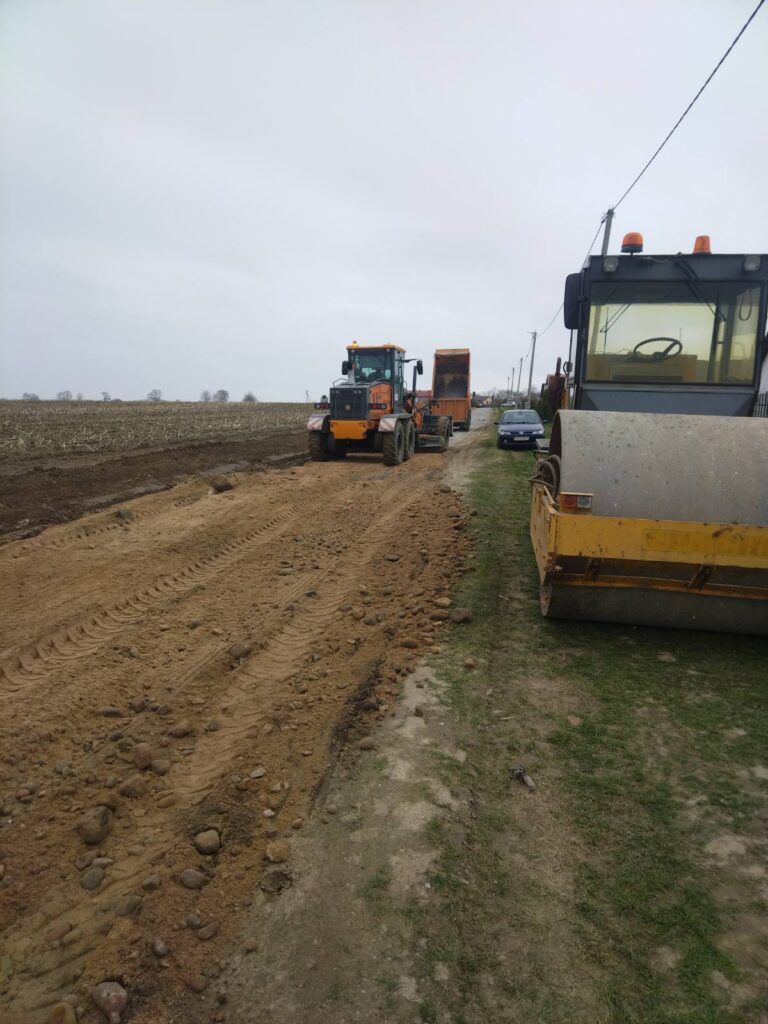 Сегодня специалисты переместились в деревню Самуэлево. На улице Дружной они исправляют профиль с добавлением ПГС. Ушло 180 тонн материала.