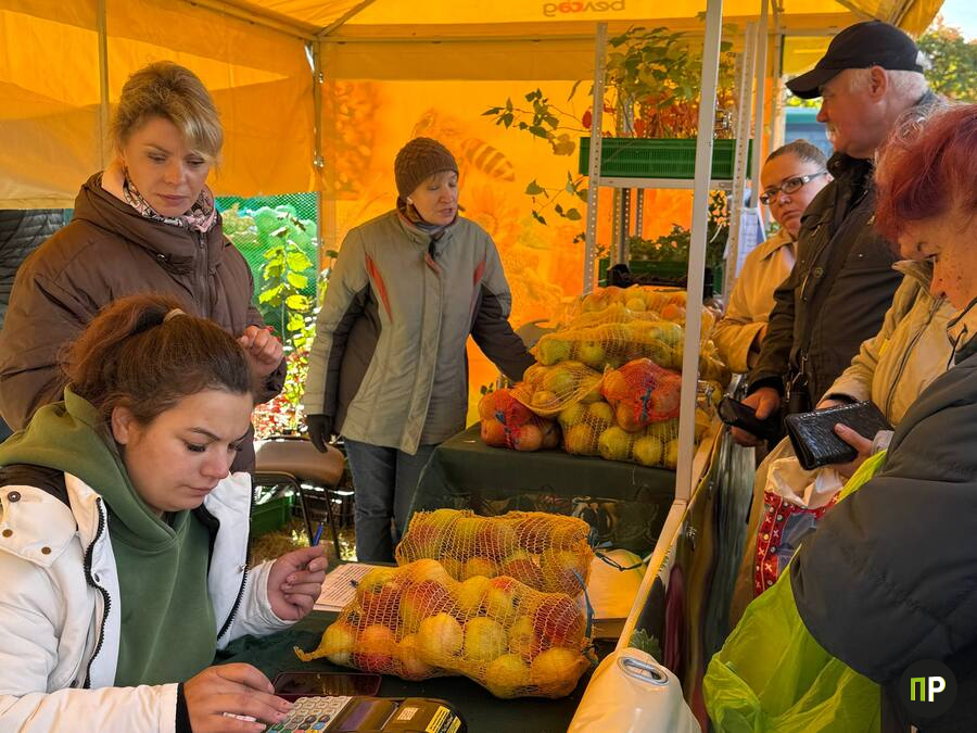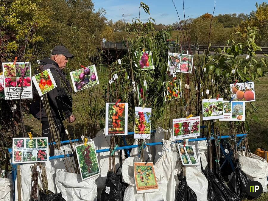 Очереди к торговым палаткам выстраивались внушительные — за яблоками, соками, картошкой, морковью и луком стояли десятки покупателей. Многие приезжали специально за посадочным материалом.