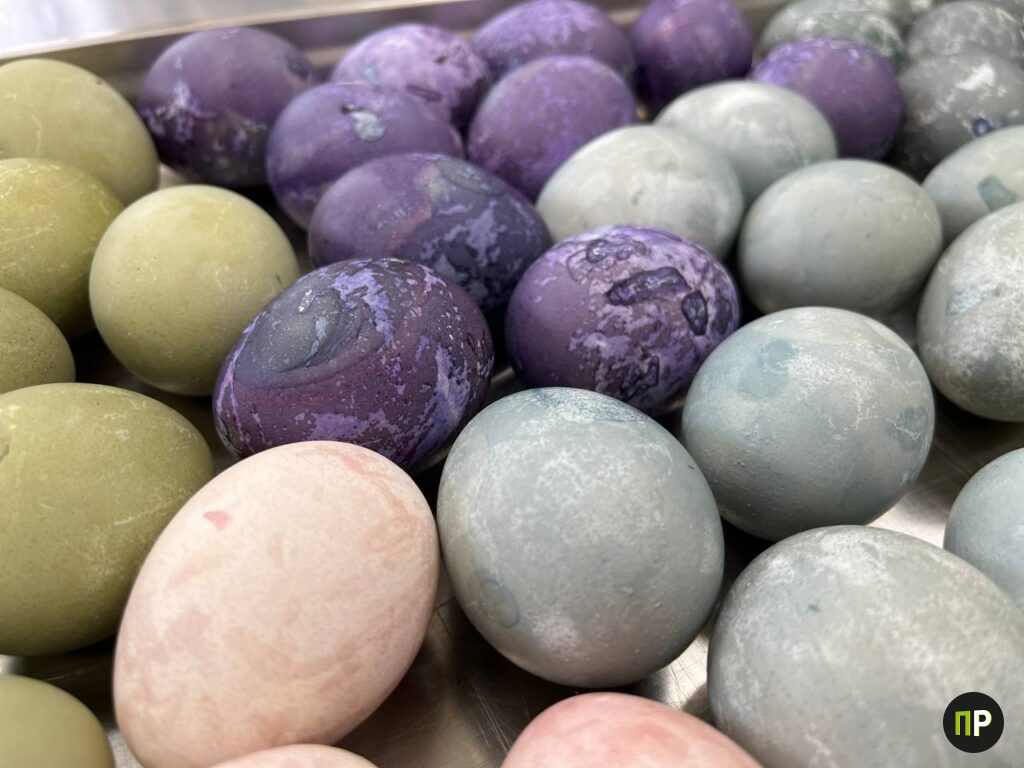 — Нежный жёлтый цвет даёт отвар с куркумой. Фиолетовый — отвар чая каркаде. Зелёный получается, если яйцо сначала сварить в куркуме, а потом подержать подольше в каркаде. Для розового варим в свекольном отваре (бураке). В каждый отвар добавляем немного уксуса, чтобы цвет держался дольше, — раскрывает секреты монахиня.
