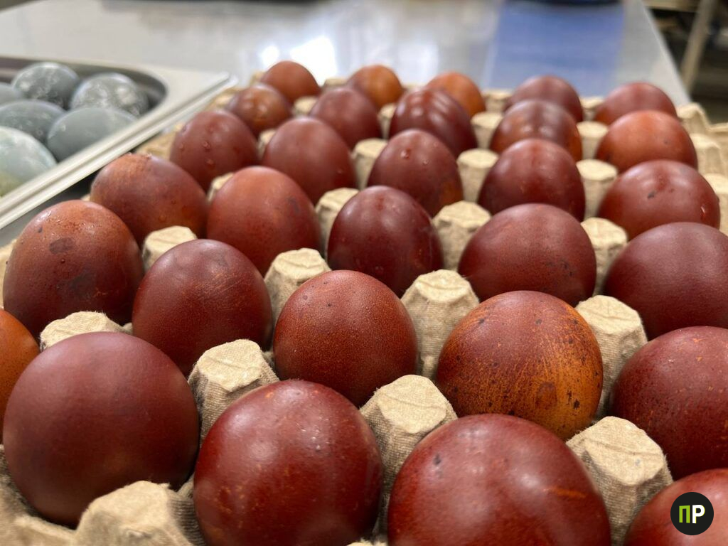 Чтобы успеть к Пасхе, яйца начали красить во вторник. К нашему приезду приготовили уже 12 коробов — по 360 яиц в каждом. Это более 4000 яиц!