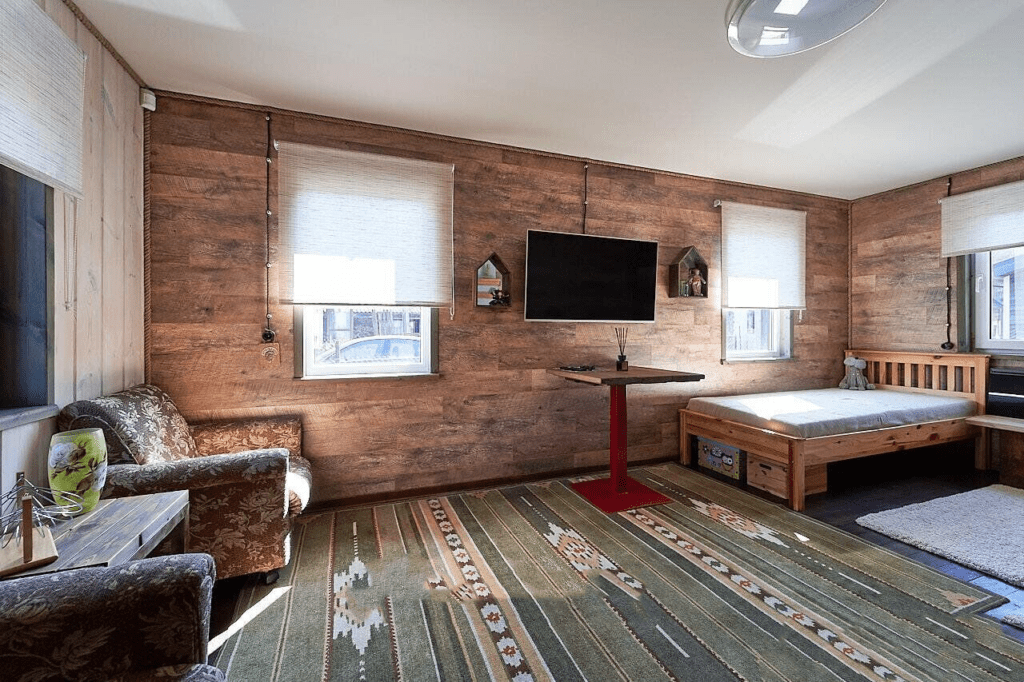 Первый этаж дома включает в себя две комнаты. Зимняя кухня, площадью 14 квадратных метров, идеально подходит для приготовления пищи в любое время года, а гостиная, размером 20 квадратных метров, станет отличным местом для встреч с друзьями и семьей. На первом этаже также установлена новая каменная печь-камин, которая, по словам продавца, способна обогревать оба этажа даже в самые холодные зимние дни.
