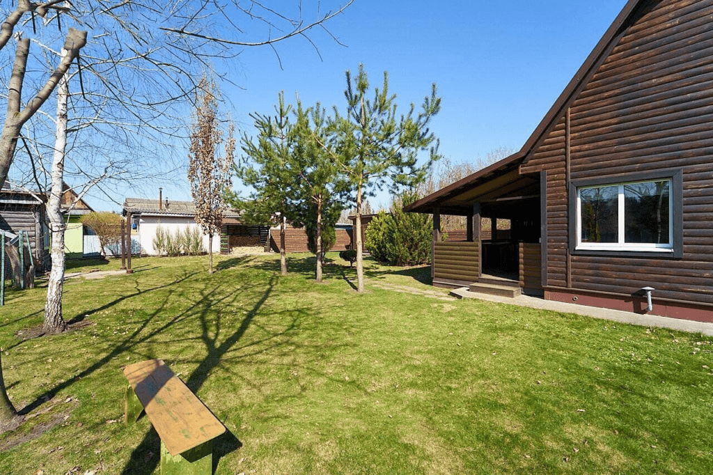 На территории участка высажены различные деревья, такие как сосны, лиственница, колонновидный дуб, японская ива, а также седые туи и можжевельник. Кроме того, на территории имеется деревянный сарай и навес с запасом березовых дров.
