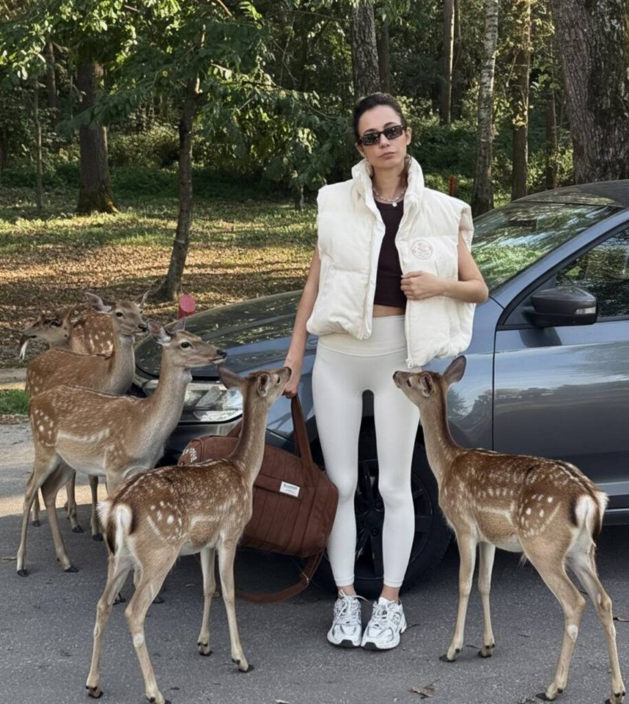 Сомнения пользователей были не беспочвенными и подкреплялись двумя яркими деталями. Во-первых, многих смутила неестественная поза одного из оленят — он был изображен некачественно, с странными пропорциями, что и выдало работу нейросети. Во-вторых, бросалась в глаза одна фотография, где девушка якобы берет животное под мышку, как некую плюшевую игрушку. Дикий олень вряд ли позволил бы обращаться с собой таким образом.