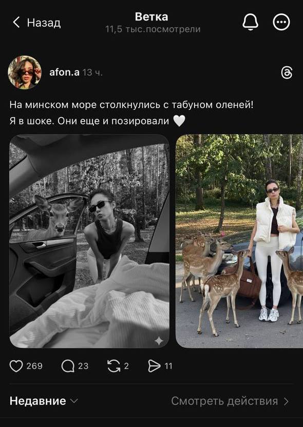 Пользователей Threads покорили олени на Минском море. Оказалось, это работа ИИ