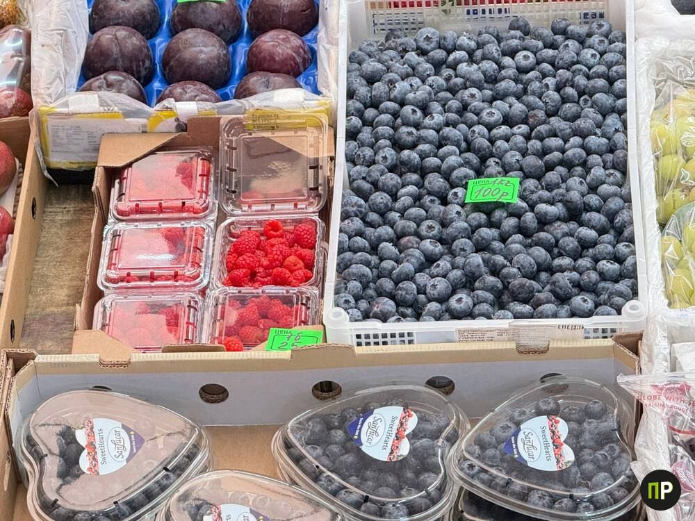 Греческая клубника заметно подешевела: в рознице её продают по 35 рублей, а в опте крупная свежая ягода стоит от 27 рублей за килограмм. Продавцы объясняют снижение цены тем, что скоро на прилавки выйдет белорусская клубника. Голубику в розницу предлагают от 100 рублей за килограмм.