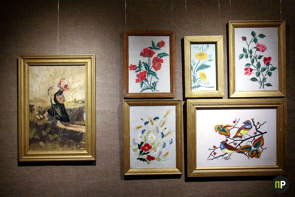 Интересно, что у каждой области Беларуси оказался свой почерк. Работы с Витебщины и Гомельщины – редкие, почти уникальные, с характерной индивидуальностью. Полотна Гродненской и Брестской областей, и некоторыми районами Минщины, словно ведут тихий диалог. Их сюжеты перекликаются, но прочитаны по-разному! Другая гамма оттенков или углубленная перспектива, третья добавила веточку там, где её не было. Каждая оставила на ткани отпечаток своей души – свой неповторимый росчерк. Темы тоже жили разные: от скромных букетов до вольных повторений картин больших художников.