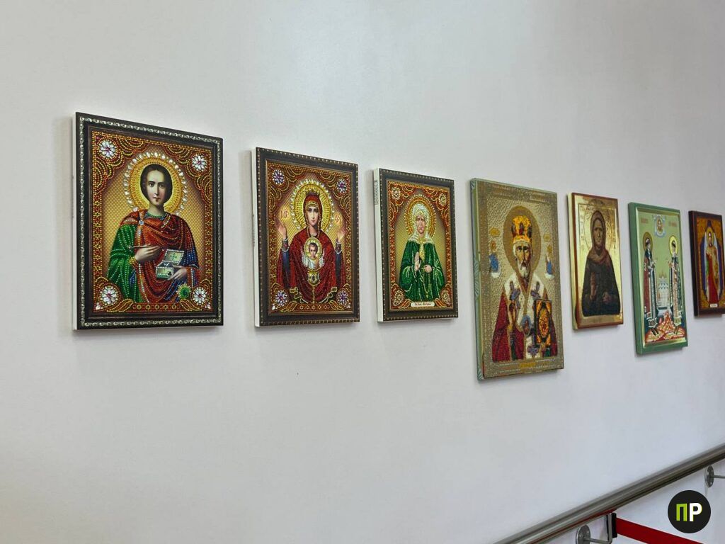 В прошлом году в центре открыли храм-часовню. Его настоятель иерей Стефан Воропай показал новый ансамбль из икон Рождества Христова и Вознесения Господня, которые написал глухой художник Андрей Игнатенко специально к Пасхе. Подопечные центра вышивают алмазные иконы из бусин. Их освящают, а после размещают в храме. Гостям показали и новую сенсорную комнату для психологической разгрузки.