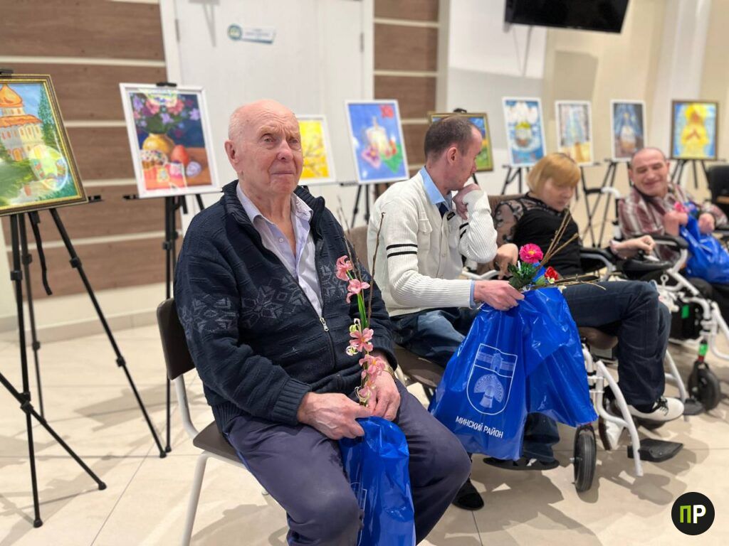 После вручения пасхальных подарков, к которым присоединилсь настоятель прихода храма Святой Живоначальной Троицы п. Боровляны, благочинный 3-го Минского районного церковного округа протоиерей Андрей Крутелев и отец Виктор из прихода Острошицкого Городка, подопечная центра Елена Тюхай подарила картину главе района. Она написала ее сама. Этот жест стал символом благодарности и душевного тепла, которое царит в учреждении.