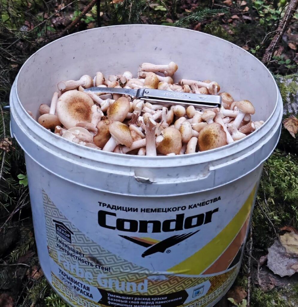 — А я нашел улов! Сразу после работы заскочил в лесок на полтора часа, пока не стемнело. Грибов хватает, просто искать надо внимательнее. Порадовало, что ещё лезут малыши.