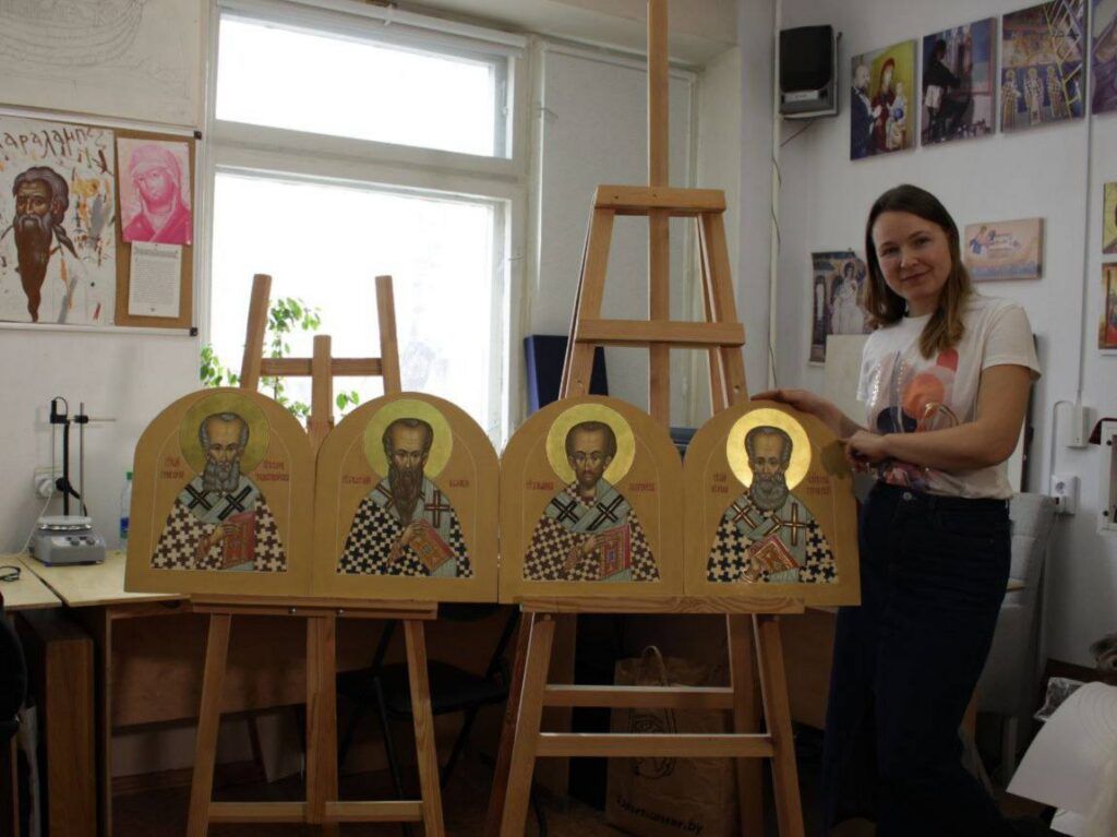 Сейчас она работает над росписью деревянного иконостаса для храма. В иконах, по ее словам, самое главное — взгляд: «Он не расслабленный, не отрешённый. Это взгляд человека, одновременно предстоящего перед Богом и перед нами».