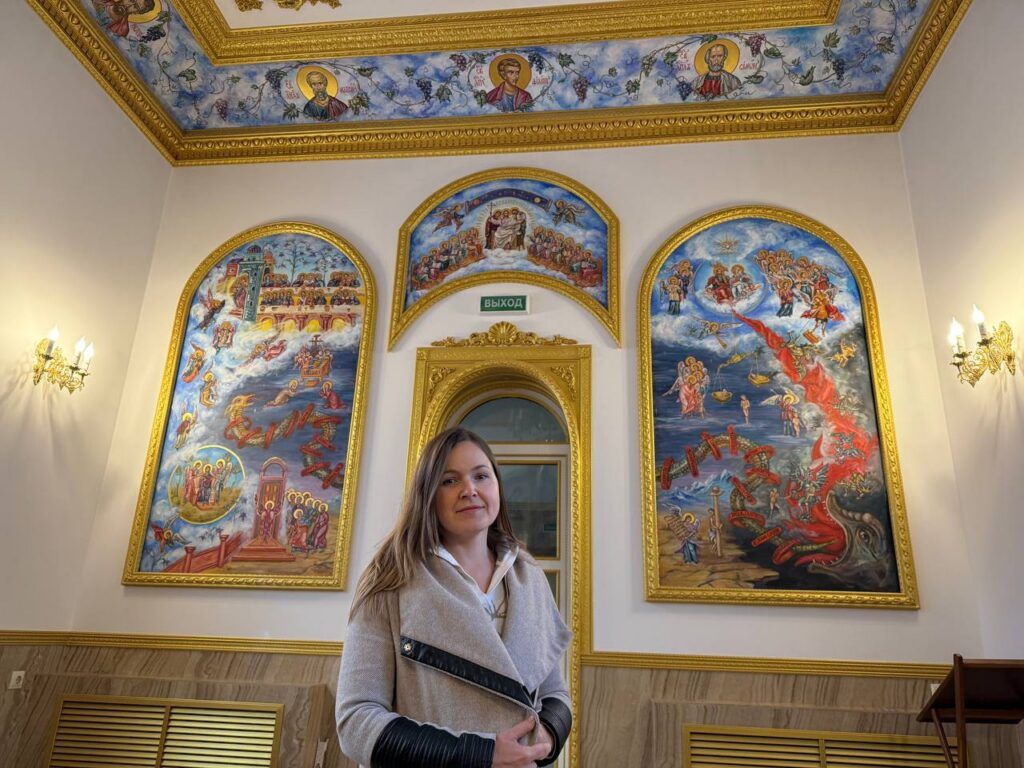 В иконопись Дарья пришла неожиданно для себя. Всё началось с того, что она приехала в Аксаковщину писать этюд, и ей предложили расписать торжественный зал церкви изнутри.
