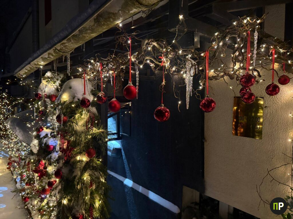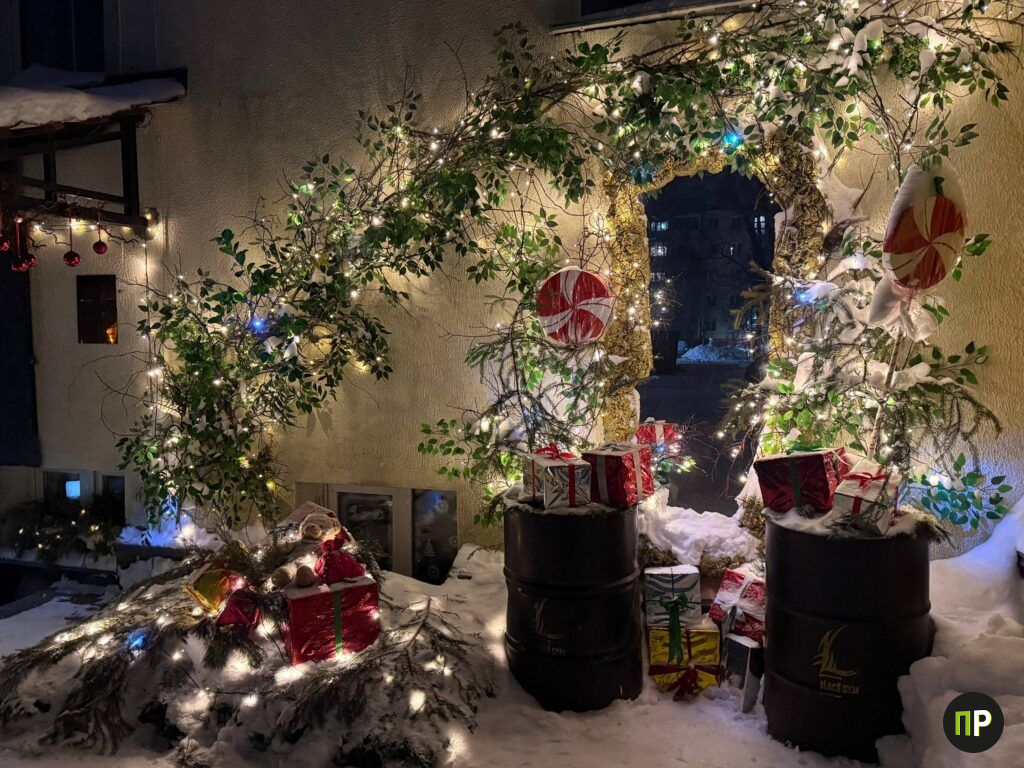 После недавнего циклона всю уличную красоту буквально занесло снегом, но команда терпеливо откапывала каждую деталь и теперь уверена, что стихия в итоге только добавила атмосферы: искусственные сосульки теперь дополнили настоящие, а снег превратил площадку перед входом в зимнюю сказку. Оксана рассказывает, что так зал оформляют практически каждый праздник: на 8 Марта, Пасху и другие.
