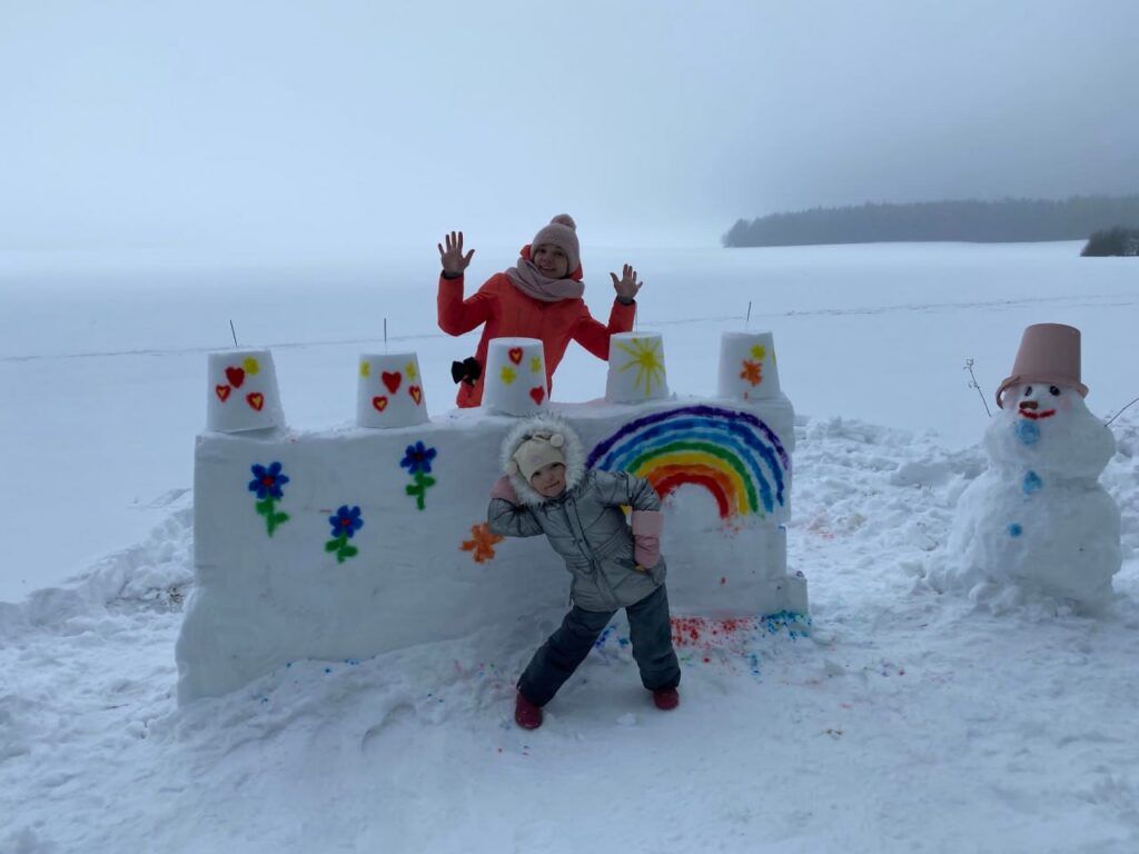 — Мы возле дома сделали горку для тюбинга и крепость. В шутку называем это бесплатным парком аттракционов, — делятся впечатлениями комментаторы.