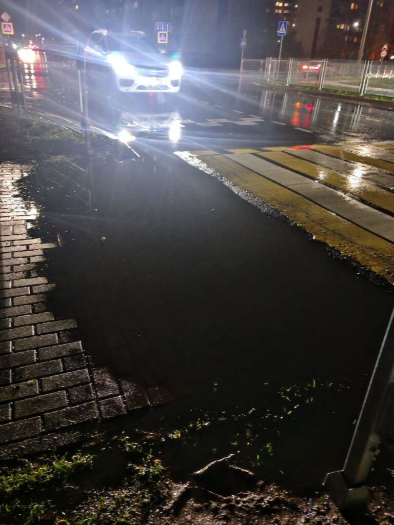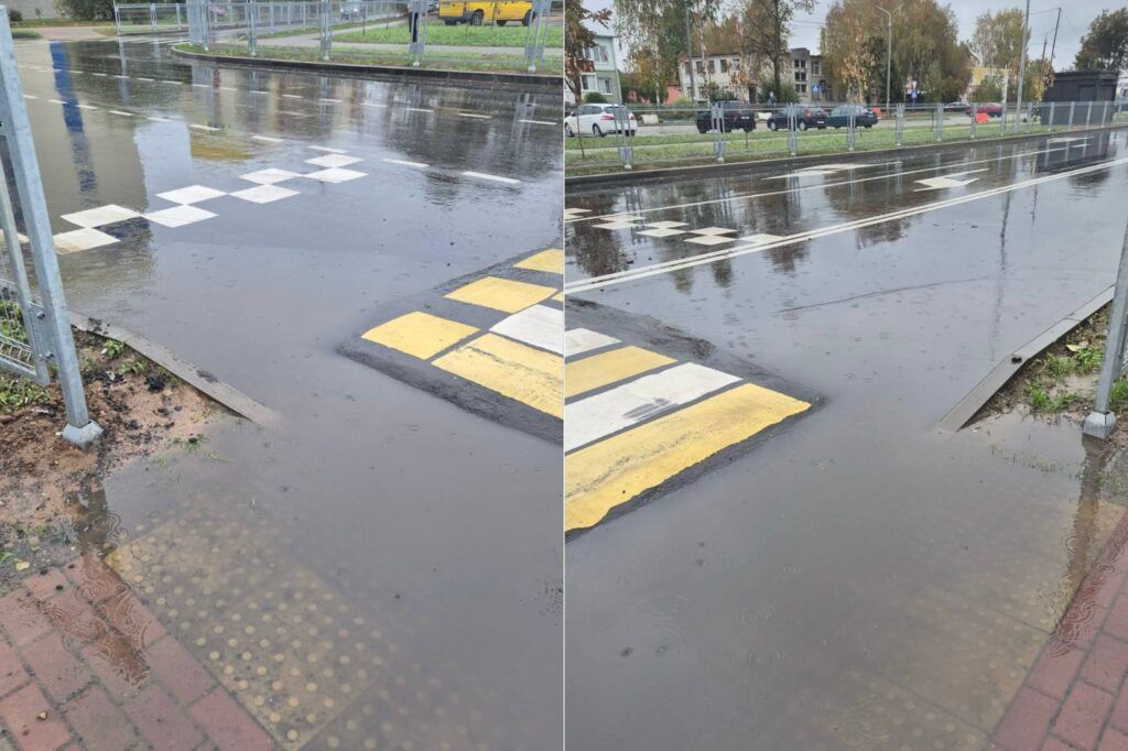 Возле пешеходных переходов в Лесковке подтапливает дорогу. Что будут делать