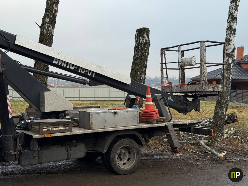 Деревья спиливают поэтапно, с применением специализированной техники, чтобы исключить повреждение близлежащих объектов.