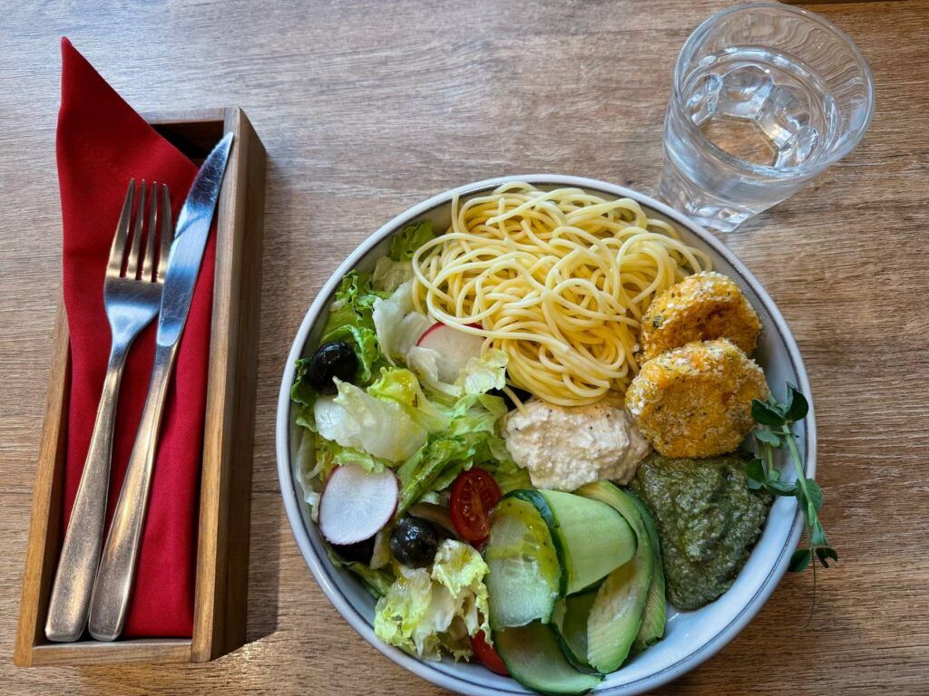Основная часть заведений с интересным меню сосредоточена в Копище. Приятным открытием стало vegan-кафе Pilligreen. Здесь можно сытно и вкусно поесть без ущерба принципам. Мы выбрали пасту с нутовыми котлетами и овощами — полноценное блюдо весом 430 граммов. Средний чек за основное блюдо — 15–25 рублей. Порции большие, красивая подача, уютная атмосфера.